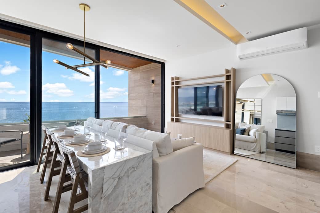 This stunning two-bedroom beachfront apartment is located in the exclusive Distrito Puerto building in Puerto Morelos, the perfect blend of modern comfort and coastal charm, Book Now.